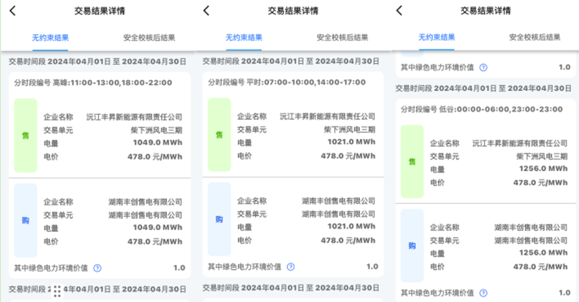 本次绿电交易为湖南沅江柴下洲风电三期电站项目4月份月度交易,相较往期普通电能量成交情况,单位成交价格环比提升约8.2%。按全年常态化开展绿电交易测算,预计可提升电站收入100万元以上。