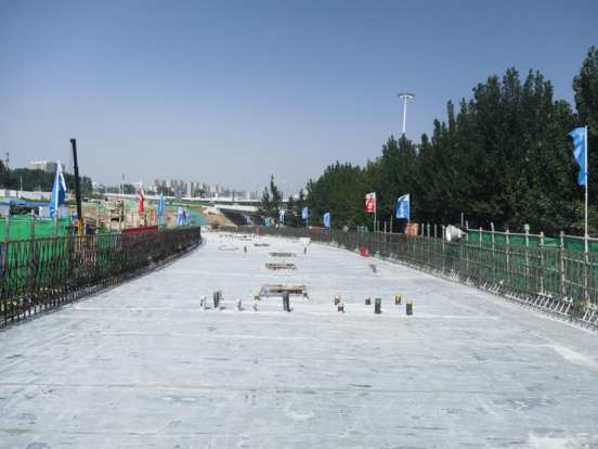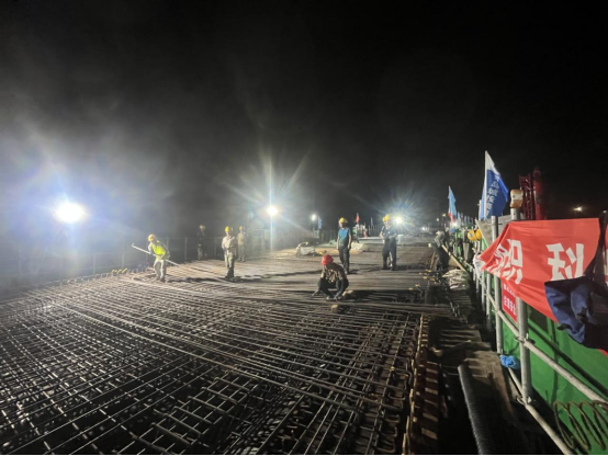 项目建设过程中城市更新集团组织各参建单位锚定目标倒排工期,以节点目标确定资源配置,增加人员机械投入,“三班倒”24小时连续作业,努力克服夏季雷雨大风、高温湿热、工效下降等不利因素,仅用32天完成135米桥梁基础及主体结构施工,再次跑出市政设施建设“加速度”。