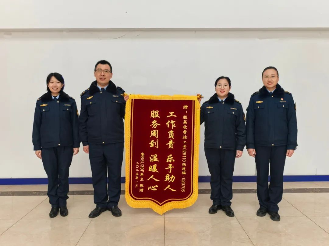 (图为胶莱收费站工作人员收到锦旗)