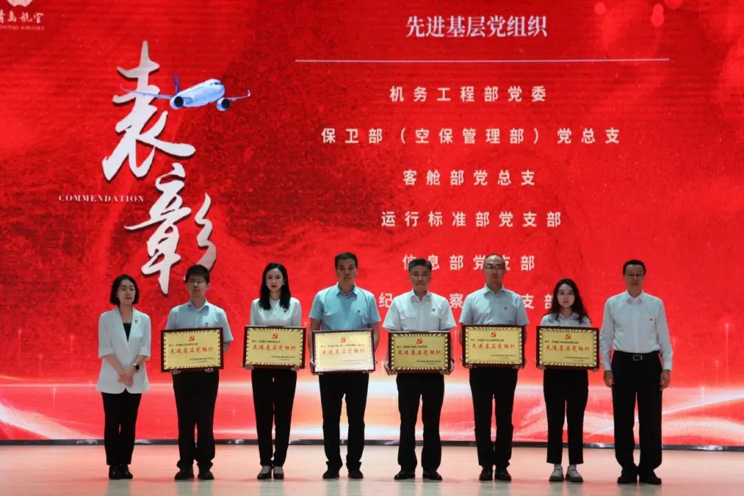 (图为青岛航空举行“七一”表彰大会暨党建品牌发布会)