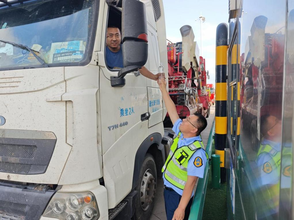 (图为2025年6月志愿者助力夏粮丰收为司机提供饮水)