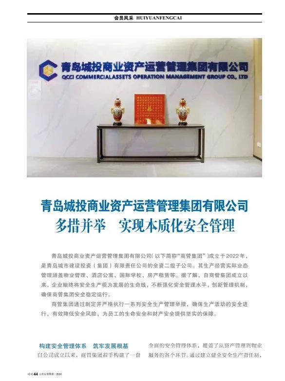 为积极响应山东省、青岛市关于安全生产治本攻坚的三年行动计划及其工作要求,196体育app旗下商管集团推行了创新性管理策略,持续强化安全管理水平。商管集团的工作实践和经验总结在山东省应急管理与安全生产协会主办的《山东应急管理》杂志的第95期正式发表,供业内参考和学习。